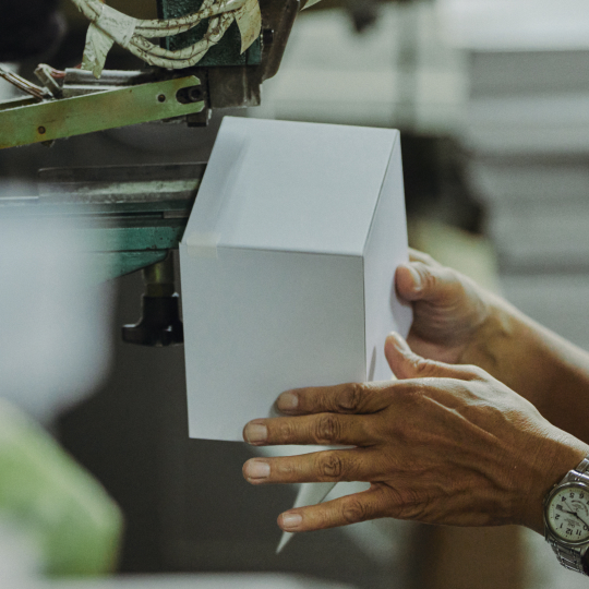 手触りや質感、強度にもこだわり抜いた紙器を製造。