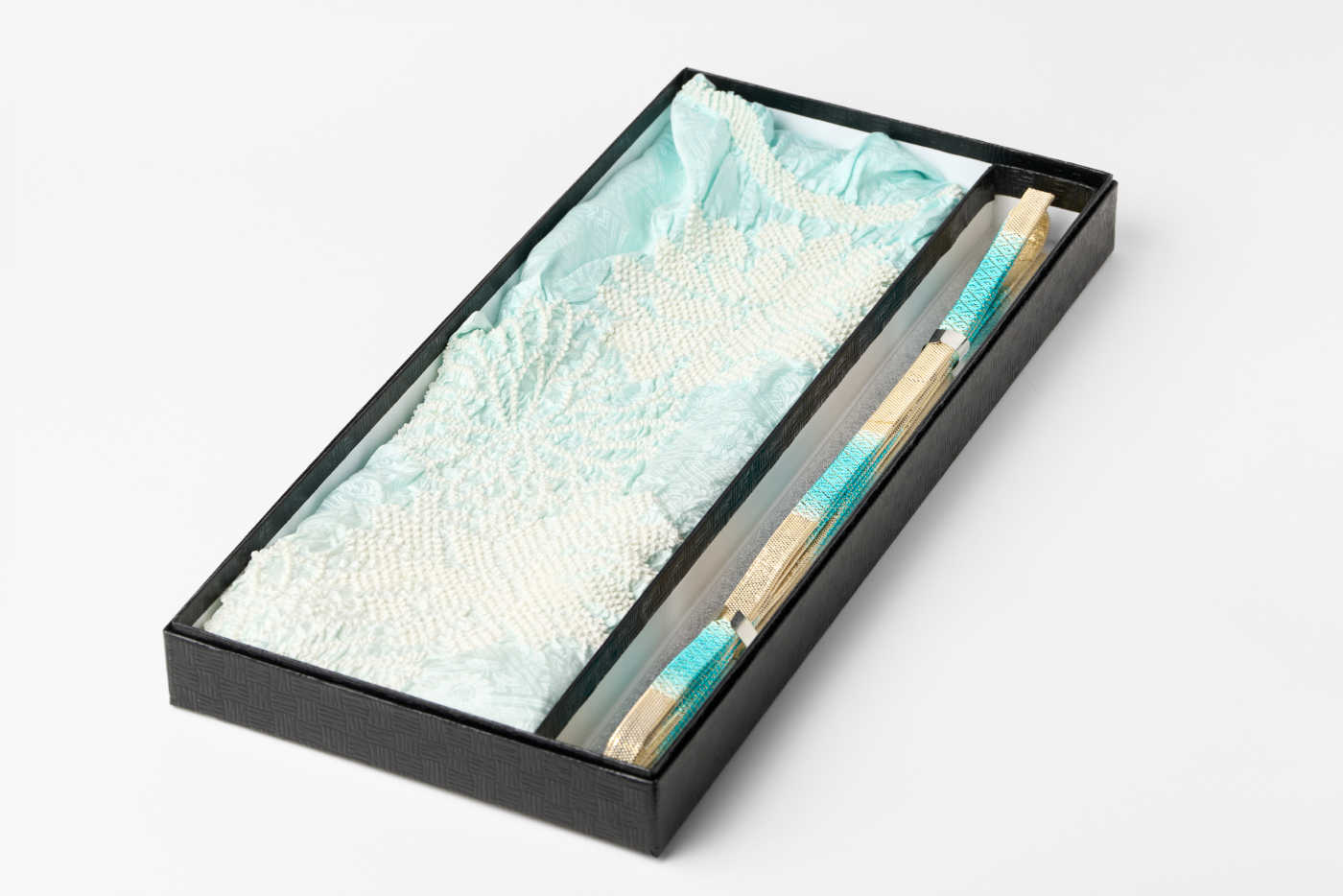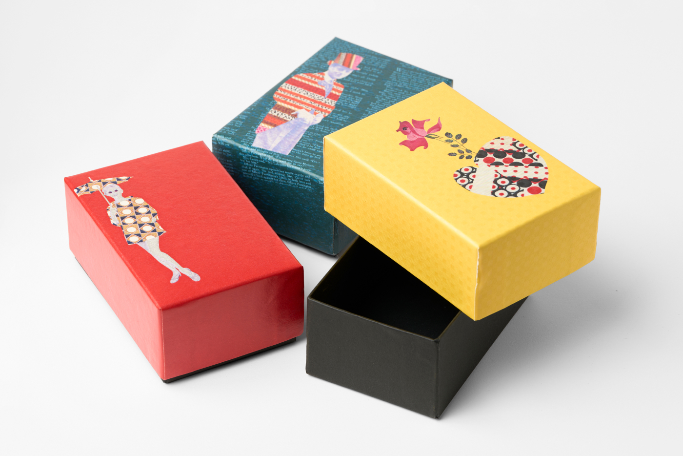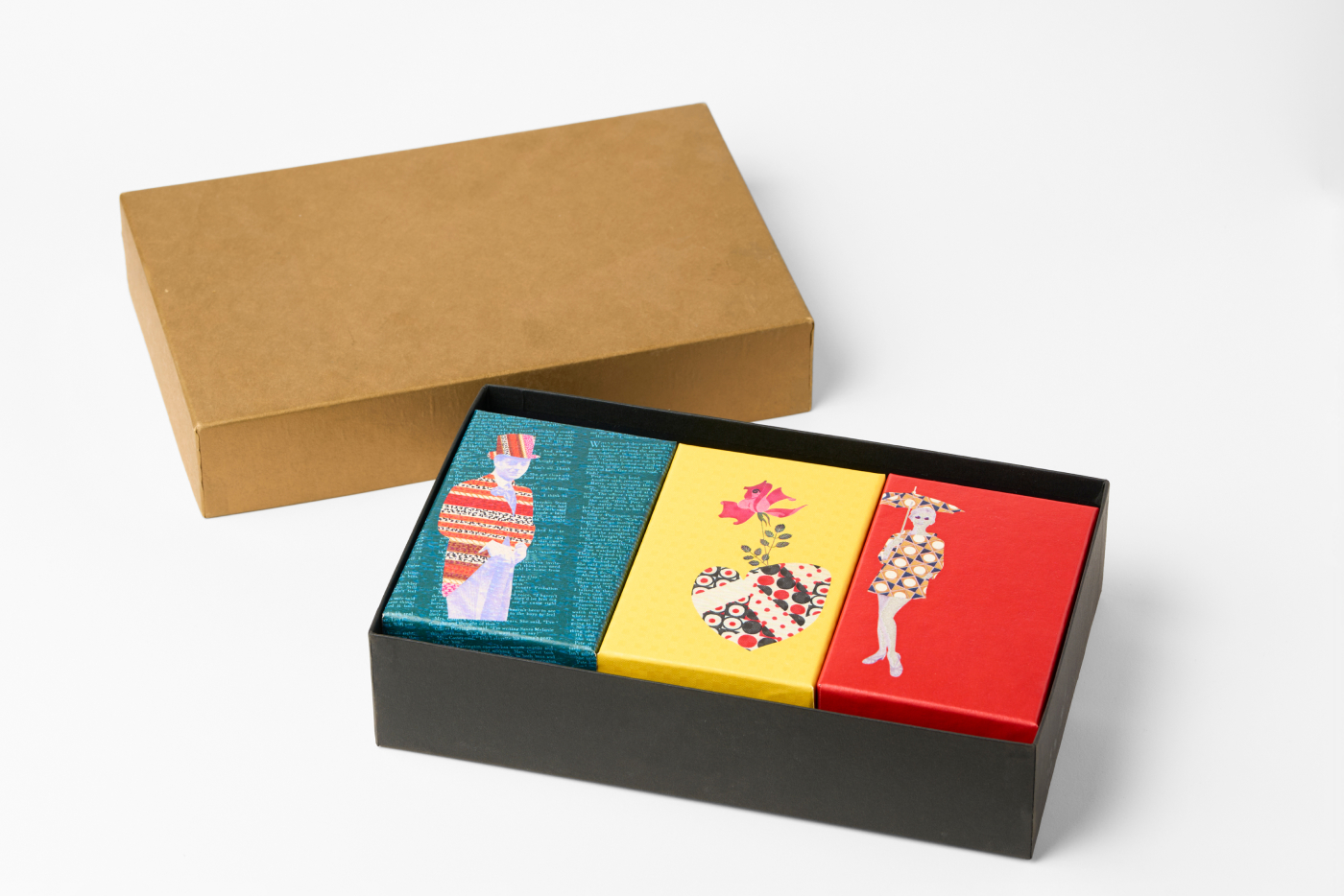 中身を決めてから箱をつくるのではなく、箱そのものを商品として製作した事例です。内箱は取り出し可能で外箱に自由にレイアウトできます。外装は貼箱用に加工したちりめん仕上げで、洋風・レトロなど、お好みの布地を選んで製作することも可能です。